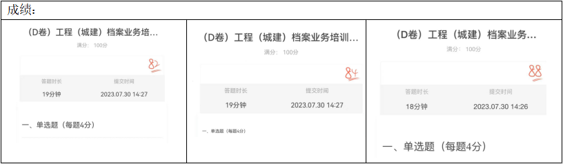 我司有4名同事參加此次工程檔案培訓(xùn),完成了6門課程的學(xué)習(xí)(包括工程檔案法律法規(guī)、工程文件的形成與整理、工程檔案的分類等),并參加了檔案培訓(xùn)證考試,其中有3人高分通過工程檔案培訓(xùn)考試。