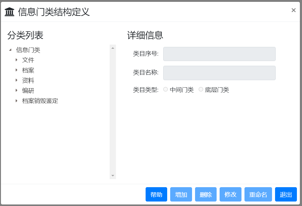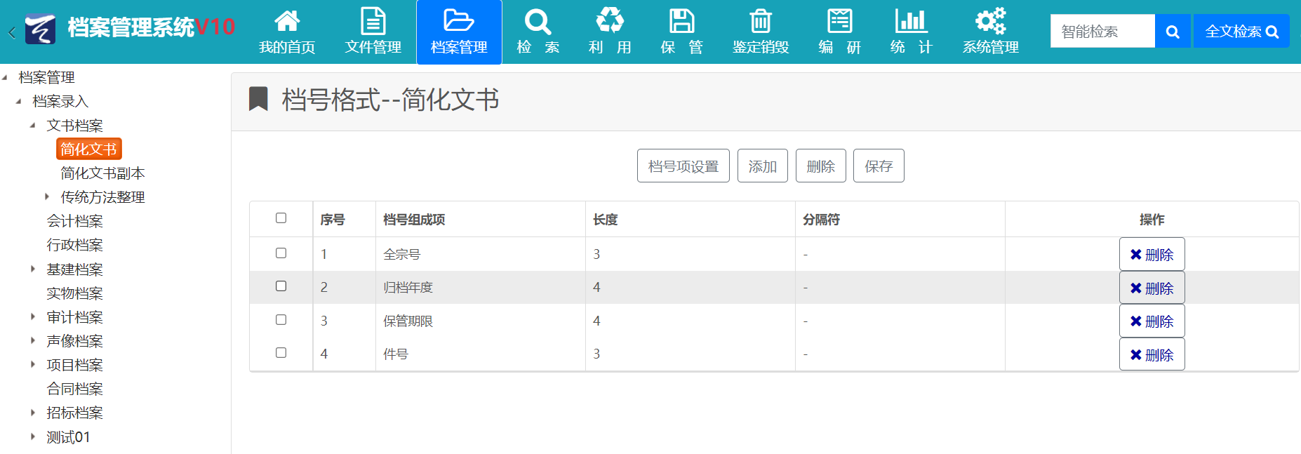 3、檔號(hào)設(shè)置功能移植到前臺(tái)實(shí)現(xiàn),方便用戶針對(duì)不同門(mén)類進(jìn)行檔號(hào)格式設(shè)置;